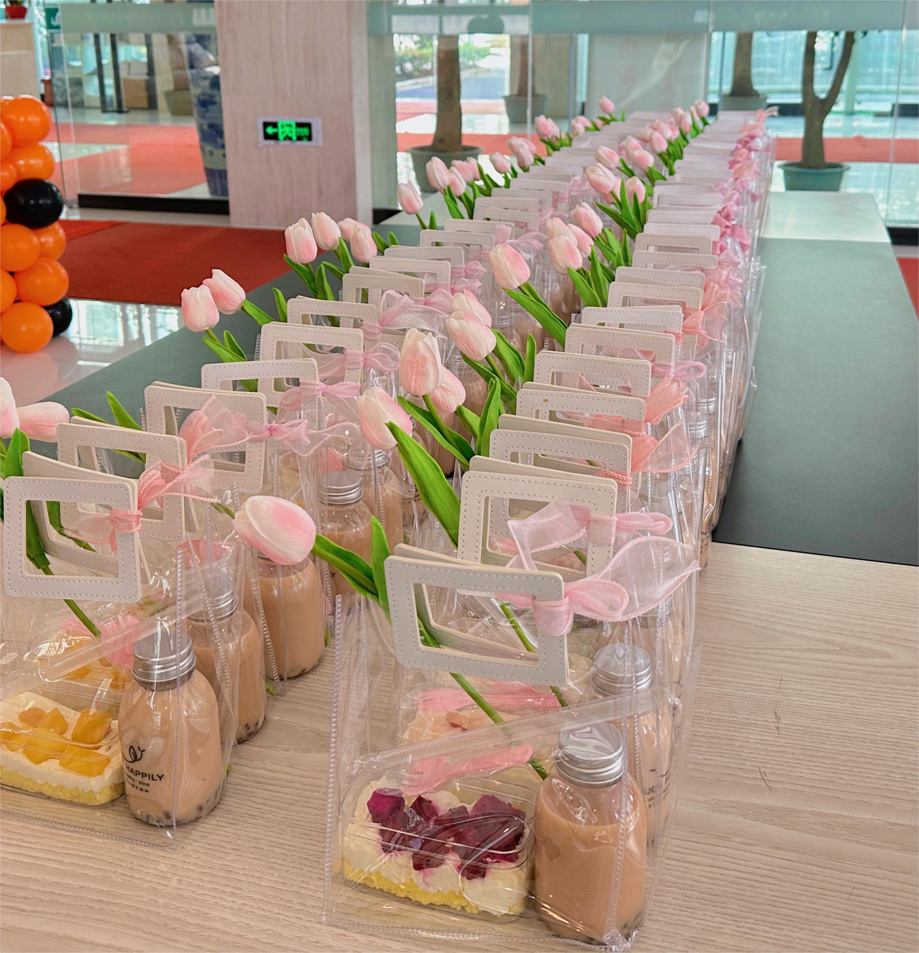 會后,韓董事長親自為每一位女性員工發放了下午茶,郁金香、甜品和奶茶。這可是公司精心為女神們挑選的噢~