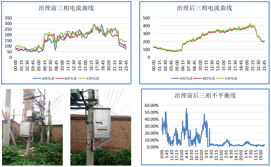 山東濟南市章丘區(qū)某配電臺區(qū)三相不平衡問題突出,存在末端低電壓問題,人工治理后沒多久又出現(xiàn)不平衡的現(xiàn)象,給運維造成極大的不便,經(jīng)過治理后三相不平衡問題得到解決。