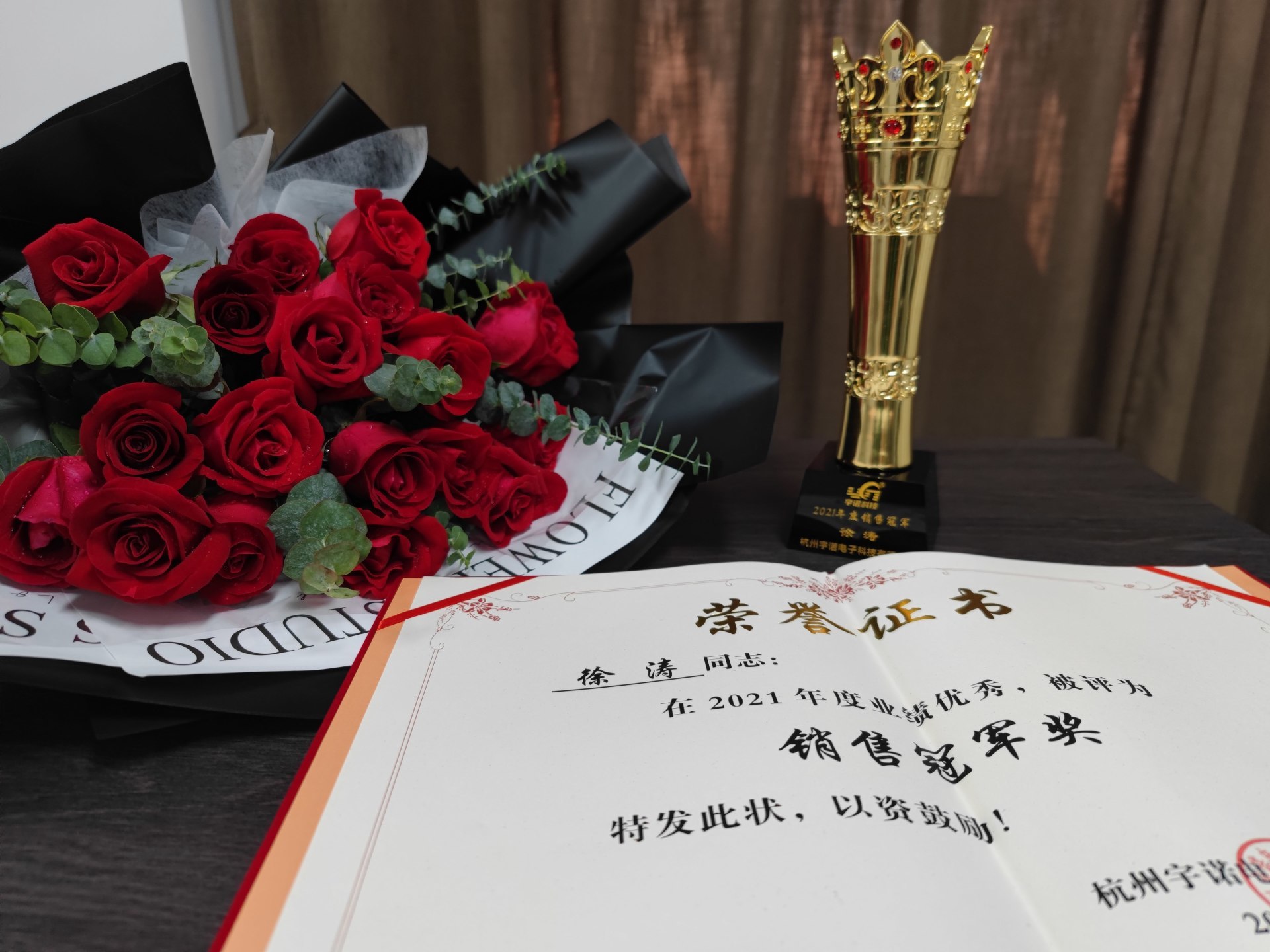 韓德昆董事長、銷售亞軍張容、市場部總監徐濤合影