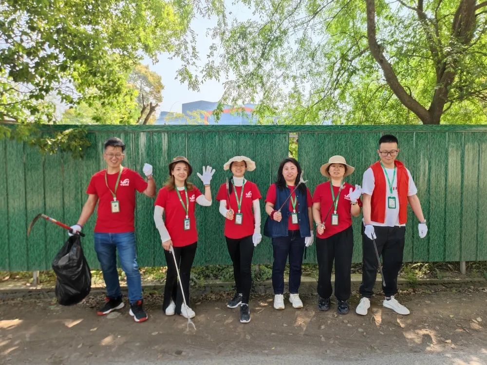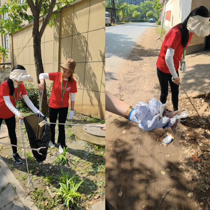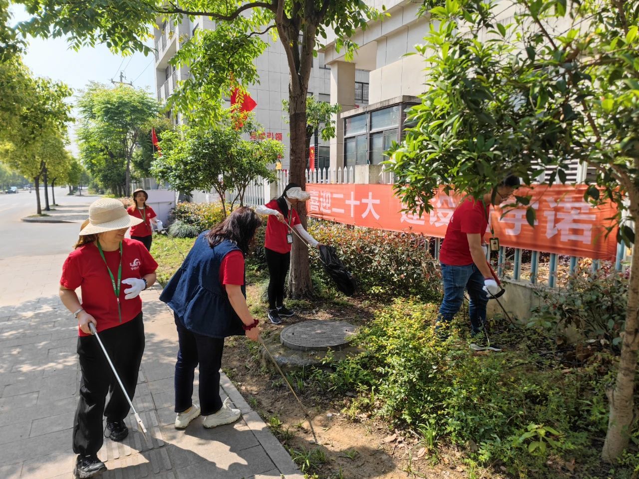 在對園區進行全方位清掃后,黨支部成員們帶上清潔工具,走出園區,對周邊的環境進行清潔。
