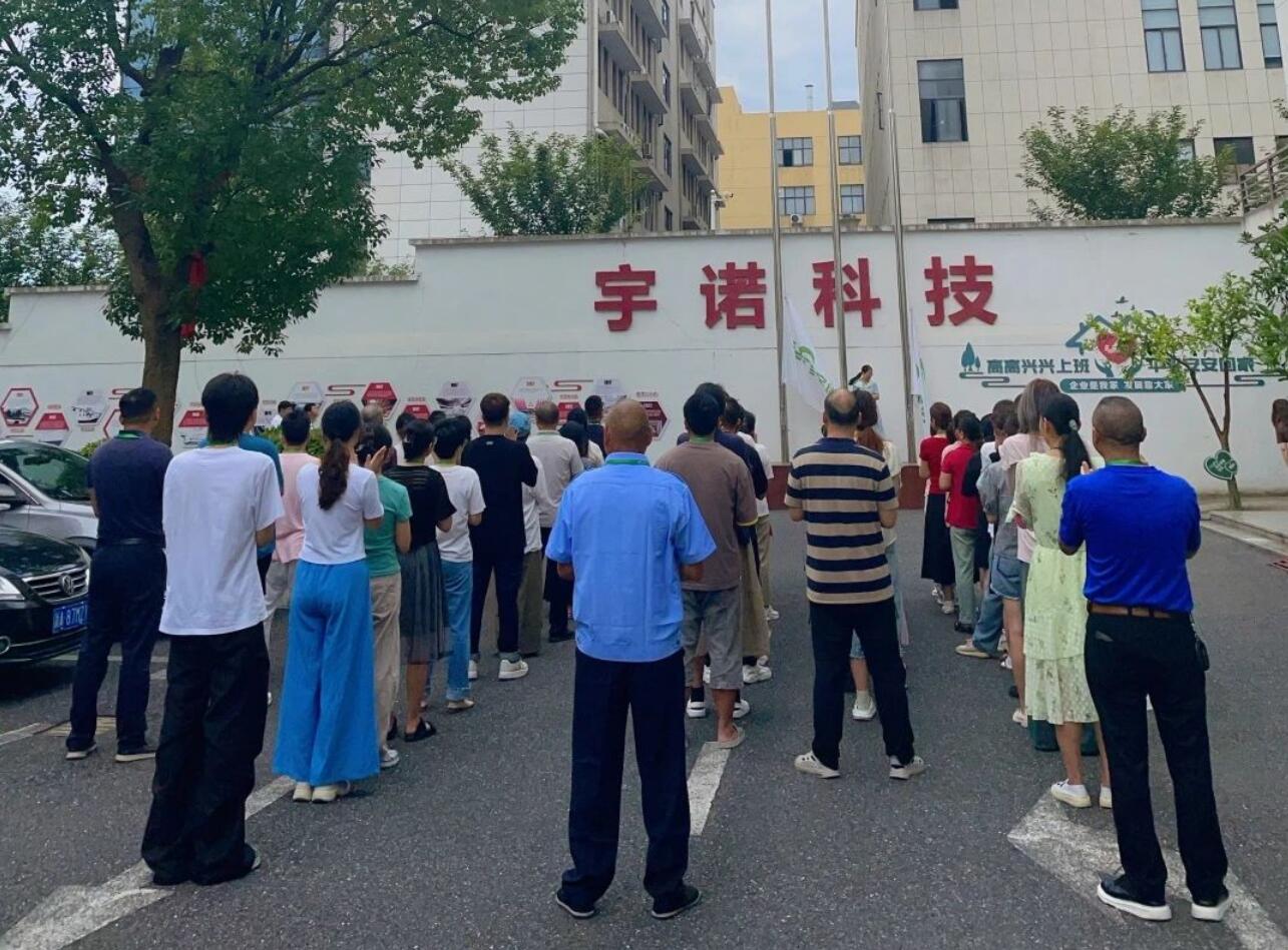 活動在莊嚴的氛圍中拉開序幕,6月30日清晨,杭州宇諾全體員工在公司舉行了隆重的升旗儀式。伴隨著雄壯的國歌,五星紅旗冉冉升起,隨后公司旗幟也迎風飄揚。公司董事長韓總發表了講話,他強調在黨的生日之際舉行升旗儀式意義重大,勉勵全體員工,特別是黨員同志,要時刻銘記歷史,堅定理想信念,將愛國愛黨的熱情轉化為干事創業的實際行動!這場儀式也為次日的紅色之旅奠定了堅實的思想基礎。